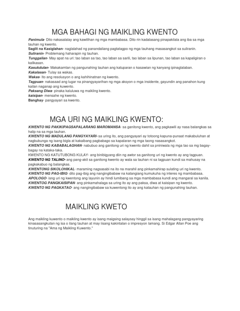 Mga Bahagi Ng Maikling Kwento Pdf