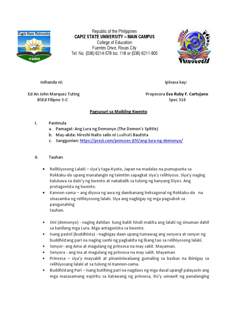 Pagsusuri Sa Maikling Kwentong Ang Lura Ng Demonyo Pdf