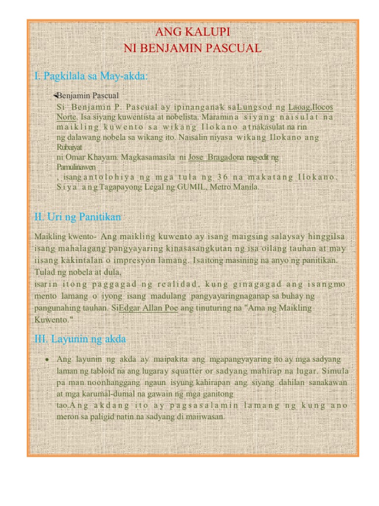 Ang kalupi no Benjamin Pascual simula gitna wakas. Ang Kalupi Maikling Kwento ni Benjamin P.