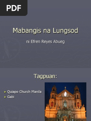 Mabangis na Lungsod ni Efren R. Dati na ang mga pangyayaring may bagong bihis anyo anggulo at pananaw. Ano ang buod ng maganda pa ang daigdig.