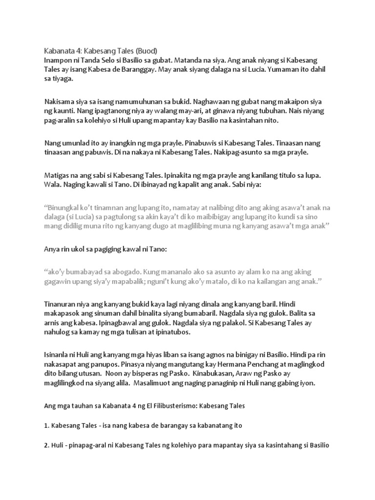 El Filibusterismo Buod Ng Bawat Kabanata 1 39 With Talasalitaan