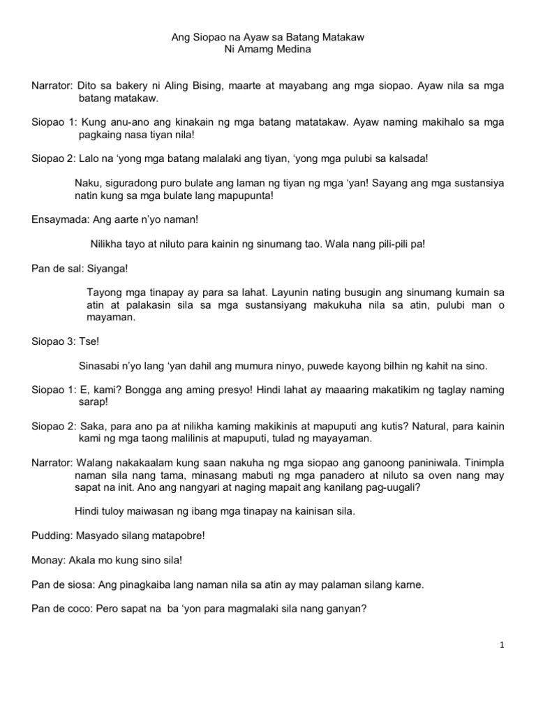 Maayos na napalutang ang ideya na nais ipabatid Walang buhay ang ipinakitang from CAS SS4 at Cebu Technological University formerly Cebu State College of Science and Technology. Hindi sapagkat naging malungkot ang wakas nito inalagaan at minahal din naman nya ito parang isang miyembro ng kanyang pamilya ngunit itoy nasagasaan at namatay at kinain T_T kahit na ang mga hayop tulad ng baka baboy manok at marami pang iba ay pangkaraniwang kinakain ng tao ay may pagmamahal pa din tayong ibinibigay sa mga ito ganon din ang tinutukoy na alaga sa kwento na namatay. Panitikang Asyano Kagamitan ng Mag-aaral sa FILIPINO Modyul 3 Ang kagamitang ito sa pagtuturong ay magkatuwang na inihanda At sinuri ng mga guro mula sa mga pampublikong paaralan kolehiyo at unibersidad.